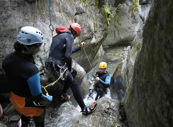 CANYONING : descente du canyon de Pulischellu avec sauts et toboggans naturels.