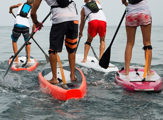 STAND UP PADDLE XXL (en été) : découverte du paddle géant avec toboggans sur la plage de Portigliolo.