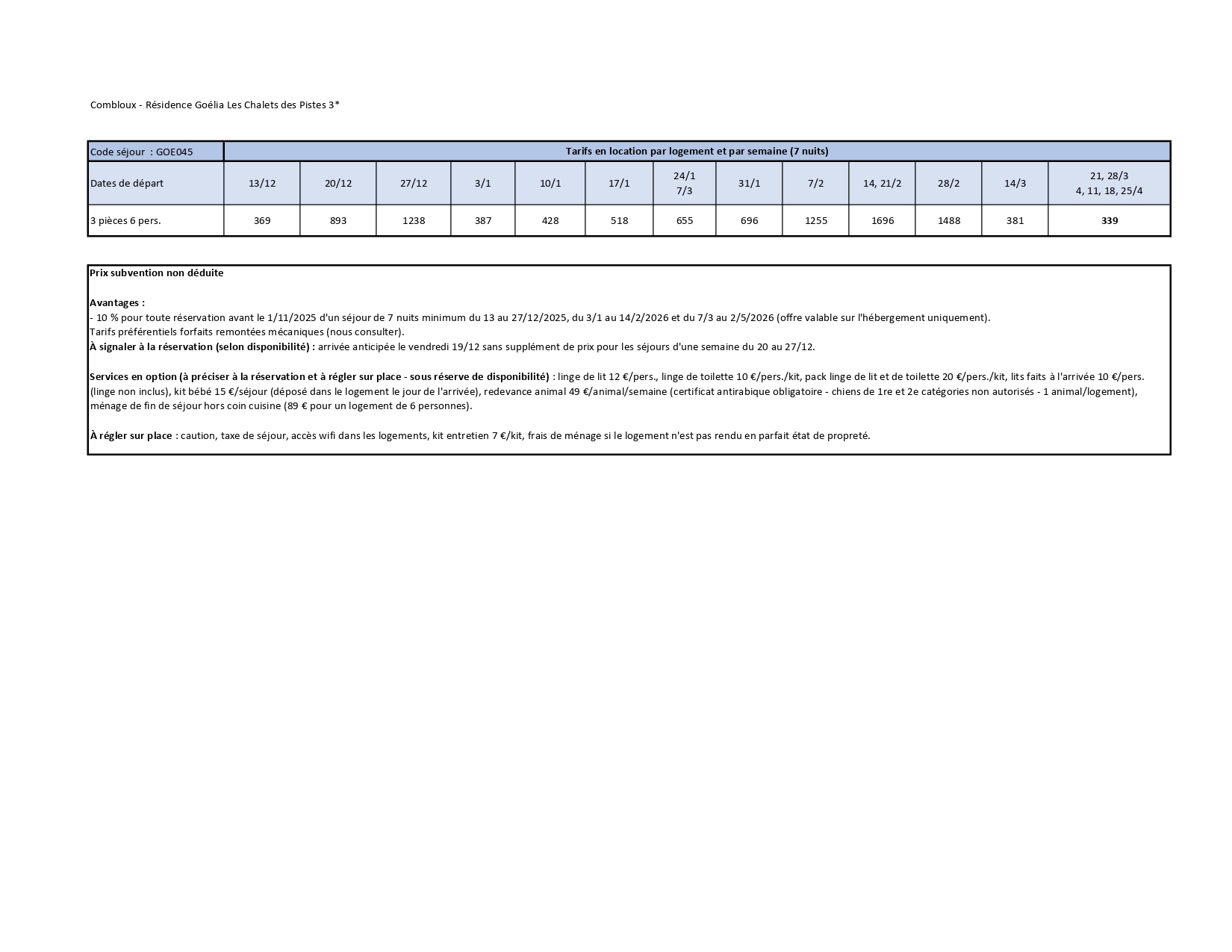 Arrivée anticipée le vendredi 19/12 sans supplément de prix pour les séjours d'une semaine du 20 au 27/12 (à signaler à la réservation - selon disponibilité)