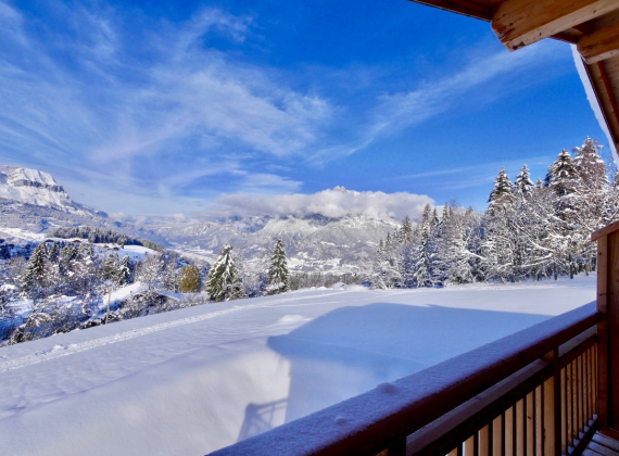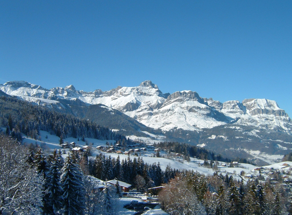 Au pied des pistes. Panorama sur les chaînes du Mont Blanc. 2 Domaines skiables à proximité. Station authentique labellisée Famille Plus.