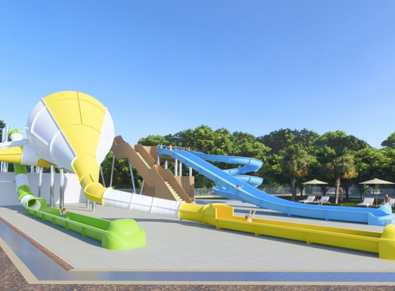 Toboggans et fontaine lumineuse