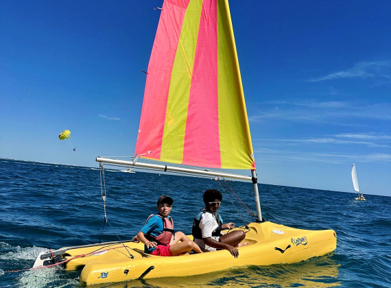 Aventures en mer : Une demi-journée pour chacune des activités nautiques : catamaran, kayak, paddle et randonnée palmée; deux journées entières aux parcs aquatiques, l'une au Cap d'Agde et l'autre à La Grande Motte pour profiter des glissades et des sensations fortes; détente sur la plage et baignades à volonté.