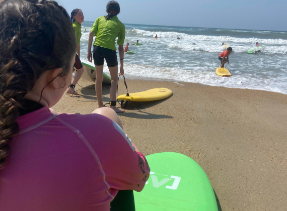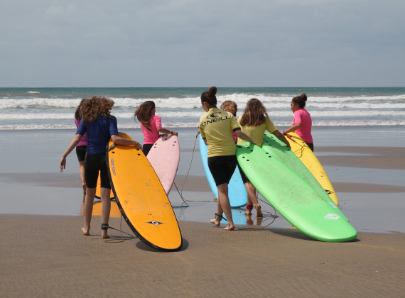 Novices, expérimentés mais surtout passionnés… un séjour pour découvrir ou se perfectionner aux plaisirs de la glisse ! Avec des objectifs de progrès, les débutants commenceront par une pratique dans des vagues lisses tandis que les plus expérimentés surferont plus au large. En fonction de l'envie des jeunes, 5 séances de 3h sur des spots de surf avec des moniteurs diplômés. Une séance sunset est prévue au coucher du soleil avec pique-nique sur la plage.