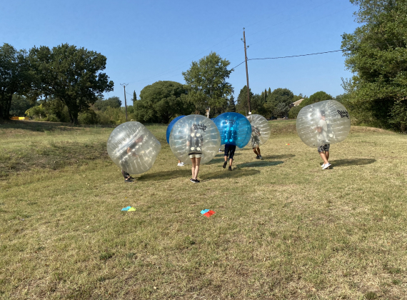 Activités organisées par l'équipe d'animation : épreuves sportives, défi vélo, bubble foot, tir à l'arc, ateliers manuels, veillées à thème, nuit sous tente… sans oublier la boum !