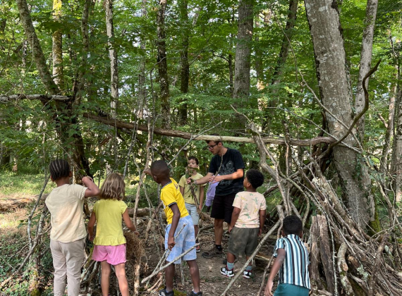 Activités organisées par l'équipe d'animation : grands jeux, chasses au trésor, construction de cabanes, balades à vélo, veillées contes, nuit sous tente… sans oublier boum de fin de séjour !