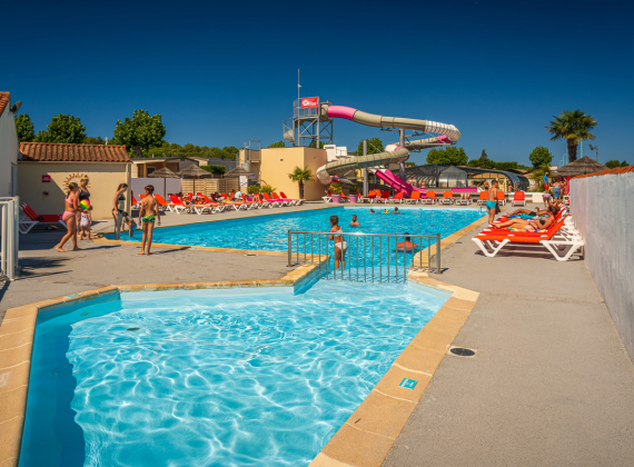 Le camping L'Océan à Saint-Jean-de-Monts vous propose un espace aquatique complet* qui ravira toute la famille. Moderne et convivial, cet espace est composé de deux piscines : une piscine couverte et chauffée accessible toute la saison, idéale pour les jours plus frais, et une piscine extérieure pour profiter du soleil de la côte vendéenne.