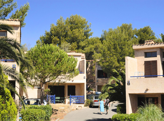 La résidence se compose de 125 logements regroupés en hameaux au charme provençal. Le terrain, en pente douce orienté vers la Méditerranée, offre un cadre de verdure chaleureux (pins maritimes, mimosas, chênes, palmiers).