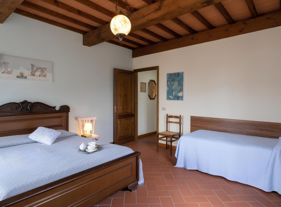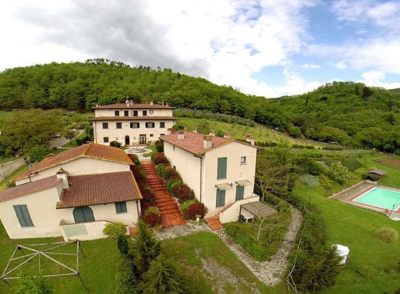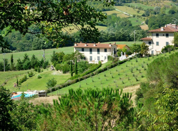 Ancienne ferme du XV ème siècle, elle est composée de 3 bâtiments dans un cadre verdoyant de 60 hectares et domine les montagnes du Mugello.